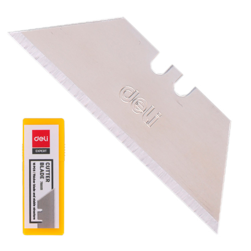 Стальные лезвия для макетного ножа Deli (10 шт в пластиковом пенале), двухсторонние, используются для резки пластика, фанеры, линолеума, ковролина.