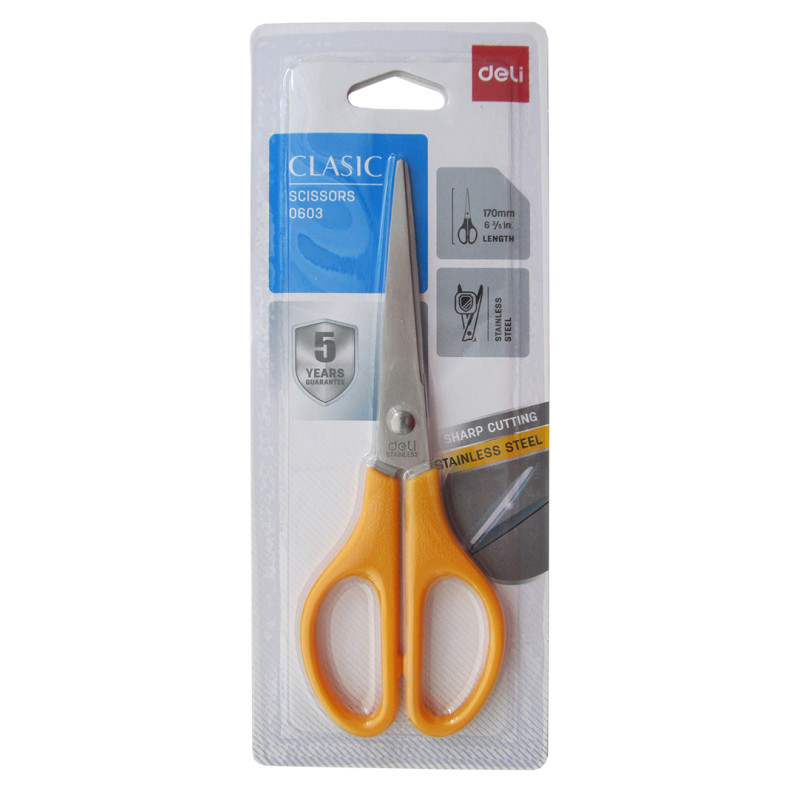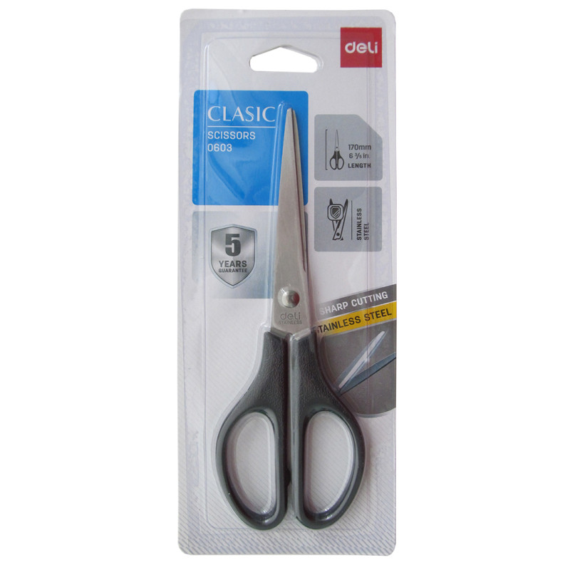 Ножницы канцелярские Deli 170 мм, с пластиковыми ручками и заостренными лезвиями из нержавеющий стали.