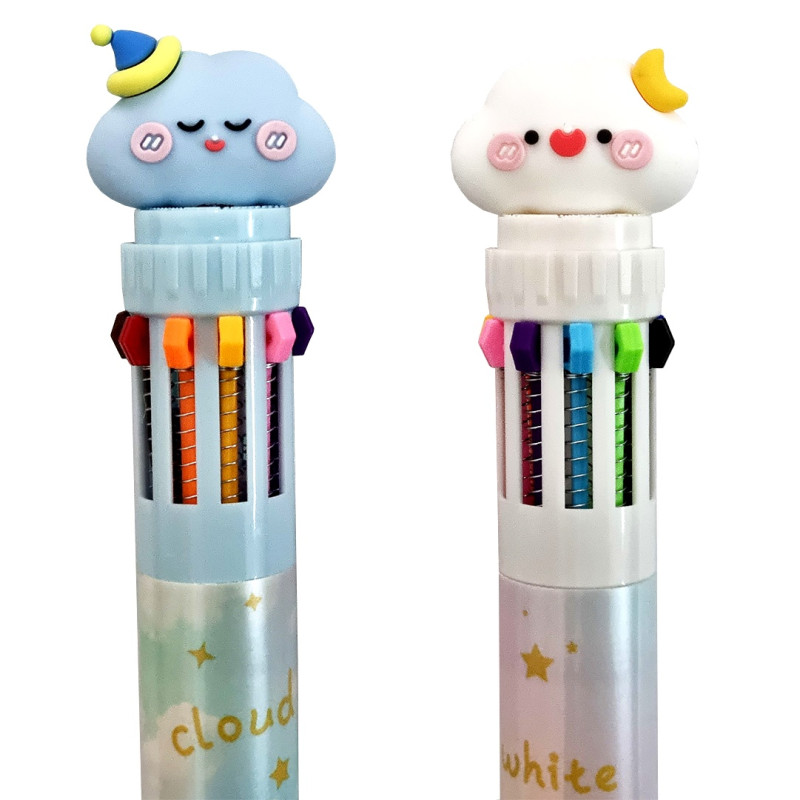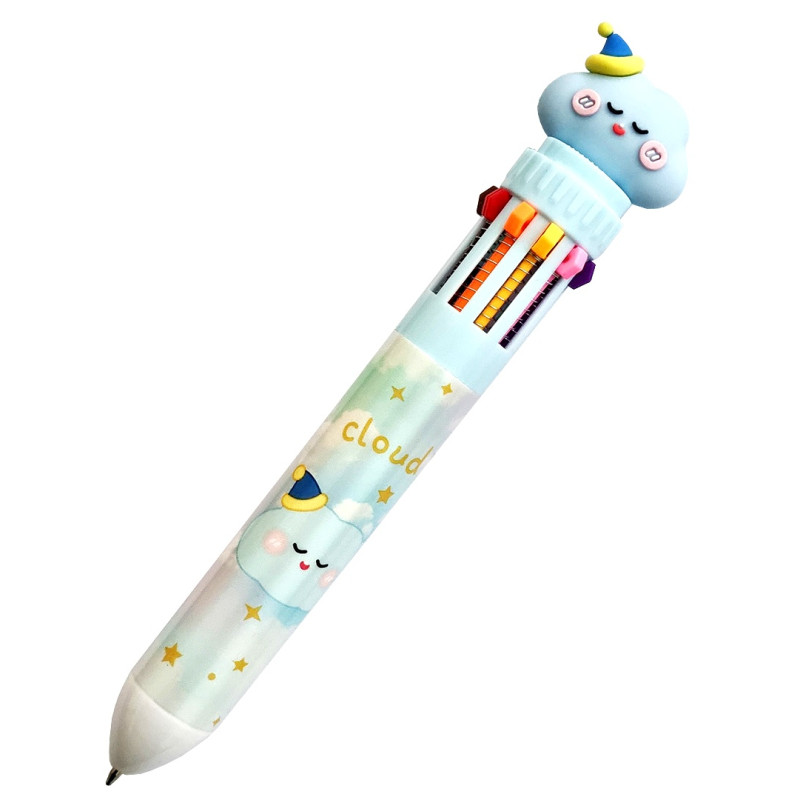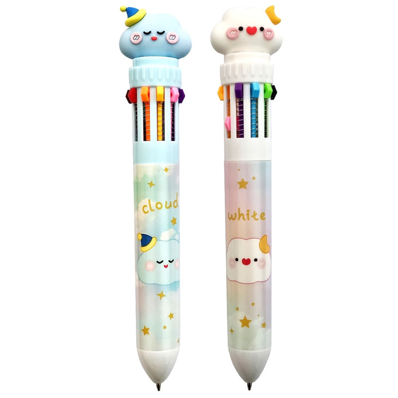 Детская, многоцветная (10 цветов) шариковая ручка Weibo «CLOUD», идеально подойдет для рисования, раскрашивания.