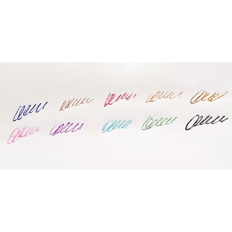 Цвет чернил: синий, коричневый, красный, оранжевый, желтый, розовый, фиолетовый, бирюзовый, зеленый, черный.