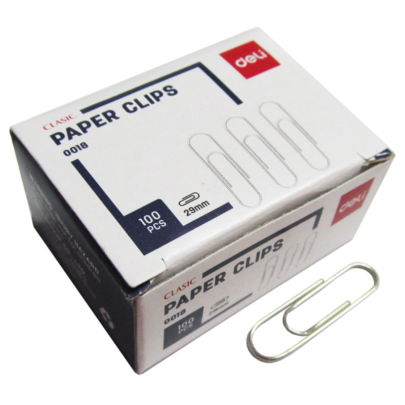 Скрепки канцелярские Deli, никелированные, длиной 29 мм, 100 шт в коробке, обеспечивают надежное скрепление бумаги.