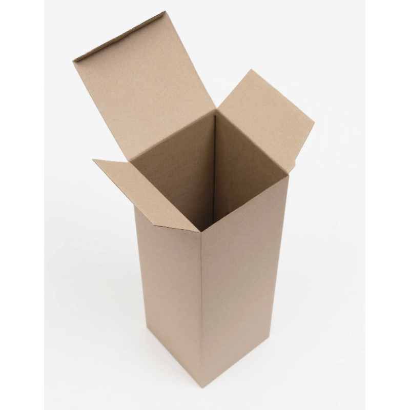Самосборная коробка 90×90×270 мм изготовлена из трёхслойного бурого гофрокартона МГК профиля E толщиной 1,5–2 мм по стандарту FEFCO 0215.