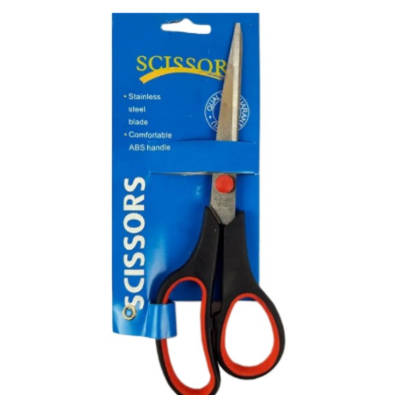 Универсальные ножницы с пластиковыми ручками и лезвием из нержавеющей стали, предназначены для резки бумаги и картона.